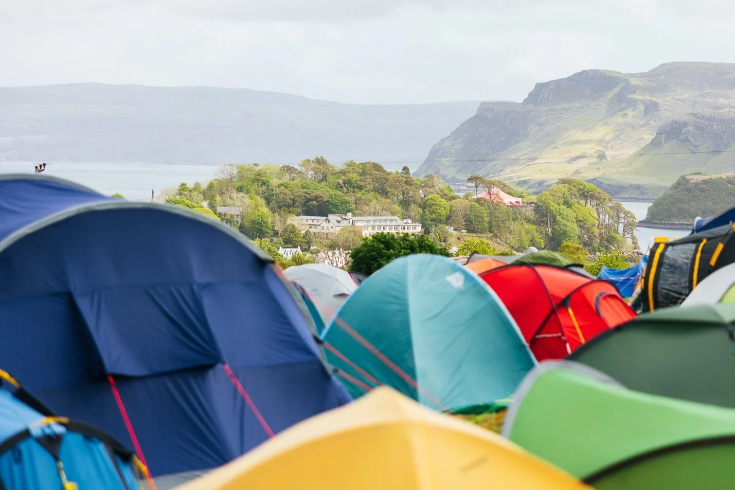 We operate a small pop-up campsite in Portree during the event. The campsite is a 15-20 minute walk from the festival site, and tickets for the campsite are per person and bought separately to your festival ticket. Campsite tickets are only valid with an accompanying festival ticket.